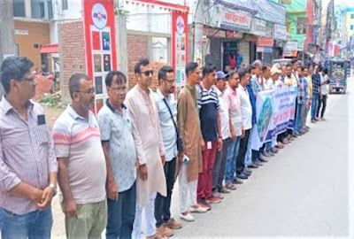 বাংলা নিউজ টুয়েন্টিফোর ডটকমের জামালপুর জেলা প্রতিনিধি সাংবাদিক গোলাম রব্বানী নাদিমকে বর্বরোচিত সন্ত্রাসী হামলায় হত্যাকাণ্ডের প্রতিবাদে আজ শুক্রবার বেলা বারোটায় ফরিদপুর প্রেসক্লাবের সামনে ফরিদপুর জেলার কর্মরত সাংবাদিকদের ব্যানারে এক মানব বন্ধন ও বিক্ষোভ মিছিল অনুষ্ঠিত হয়।